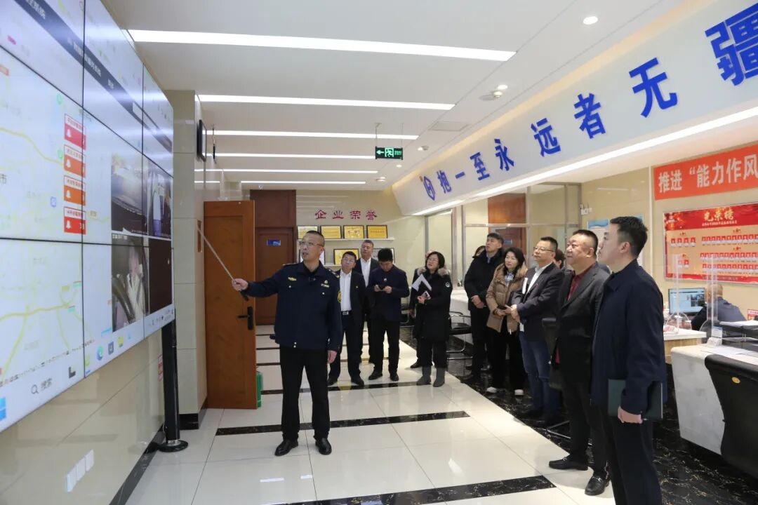 在一樓服務(wù)大廳,王剛一行參觀了龍旅出租車公司數(shù)字化智能化監(jiān)控調(diào)度與管理服務(wù)平臺,詳細(xì)詢問了龍旅公司出租車數(shù)字化、智能化建設(shè)等情況,并與省勞動模范、省五一勞動獎?wù)芦@得者金彥偉進(jìn)行了親切交談。